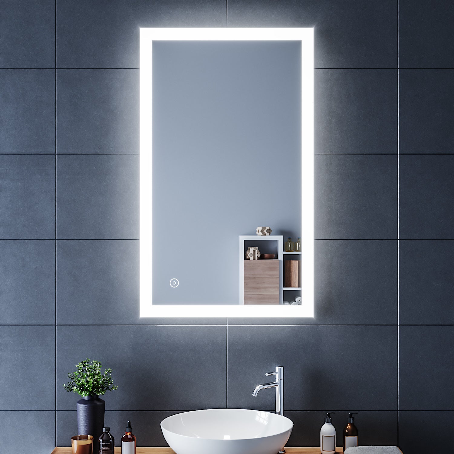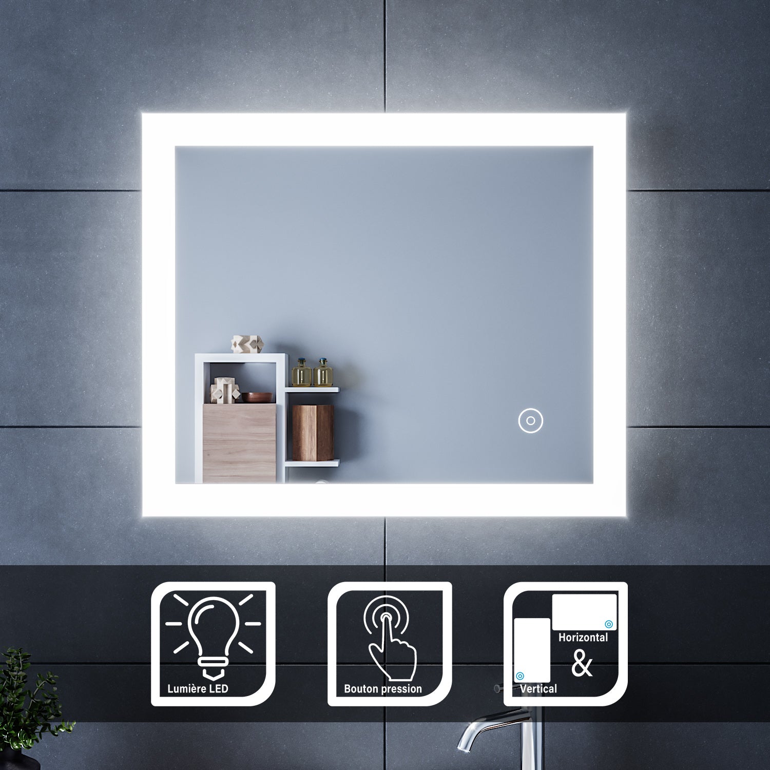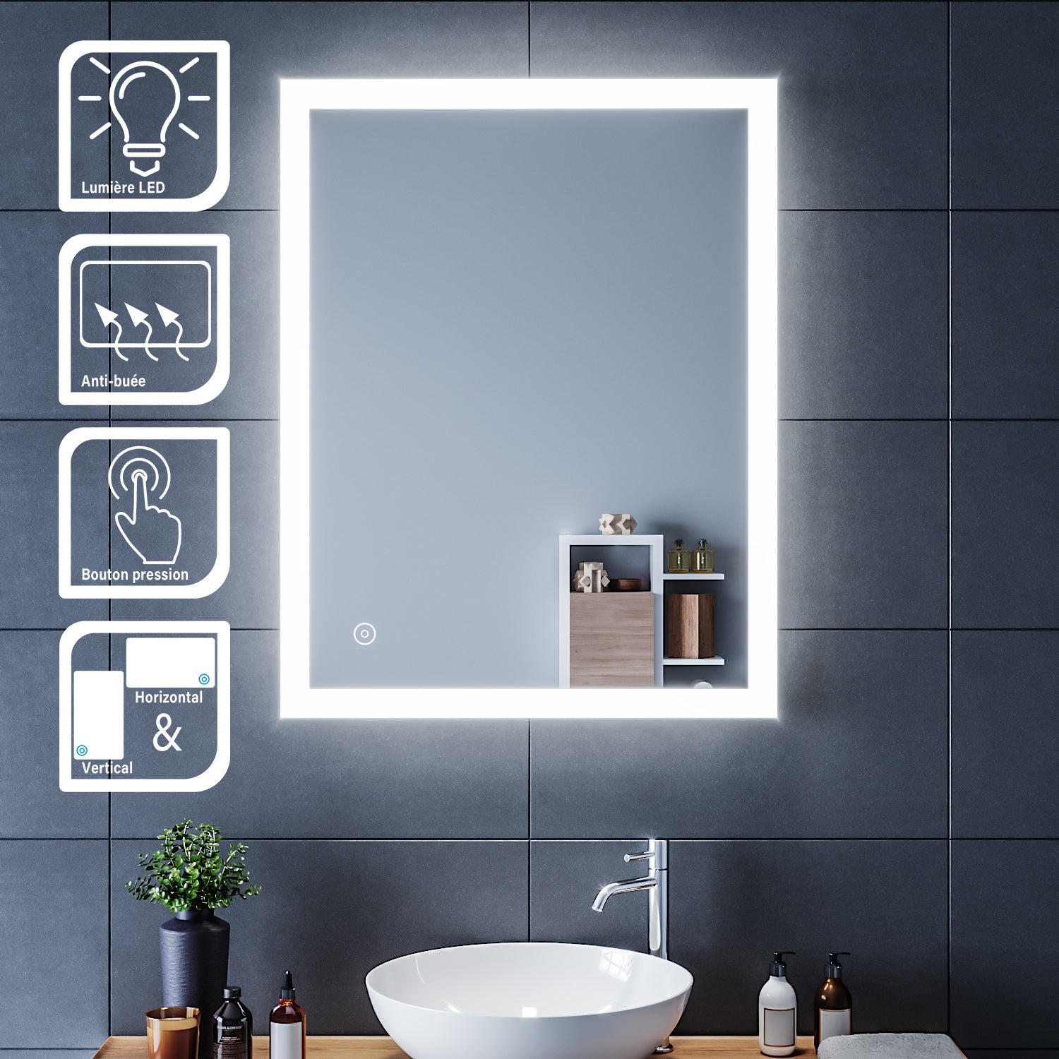 • Interrupteur Tactile:Lorsque le miroir est allumé, le désembuage démarre automatiquement.