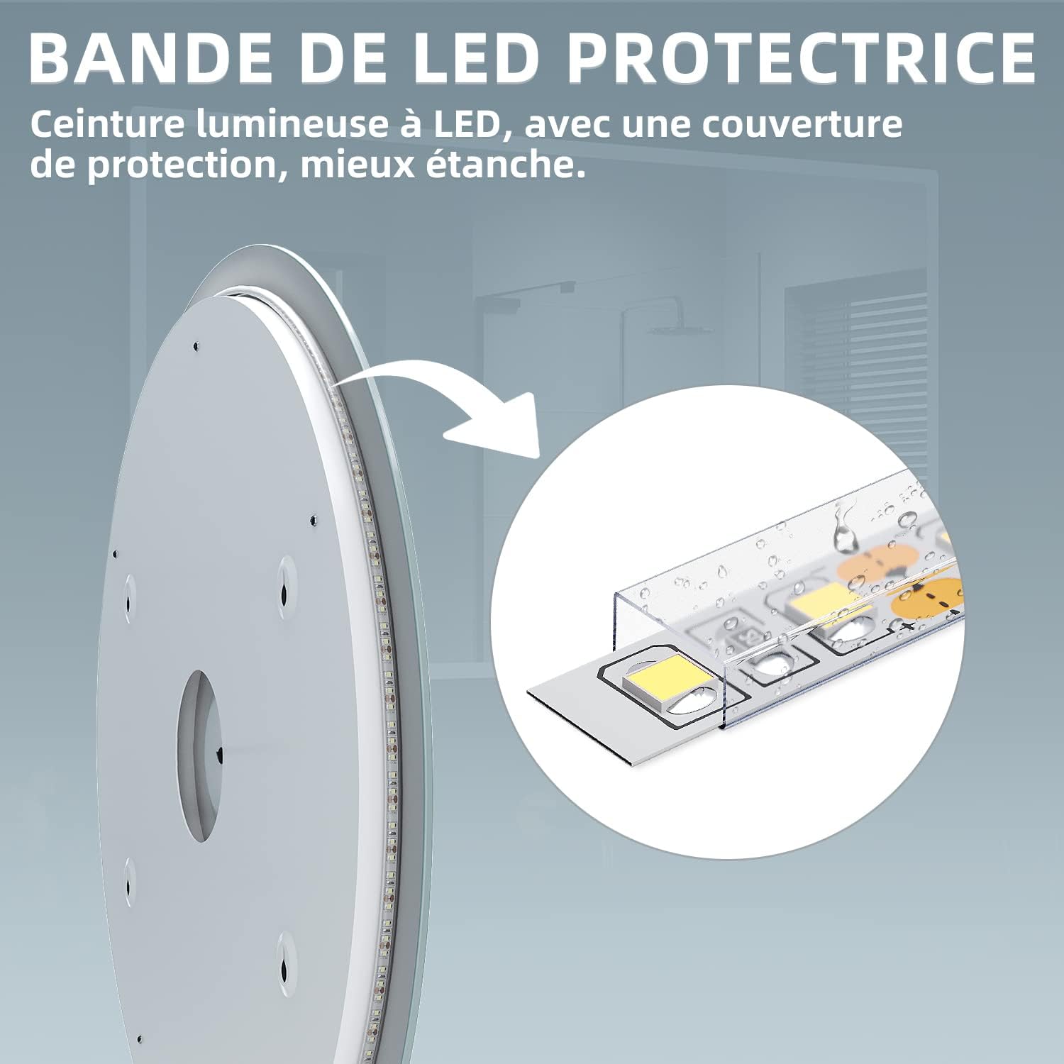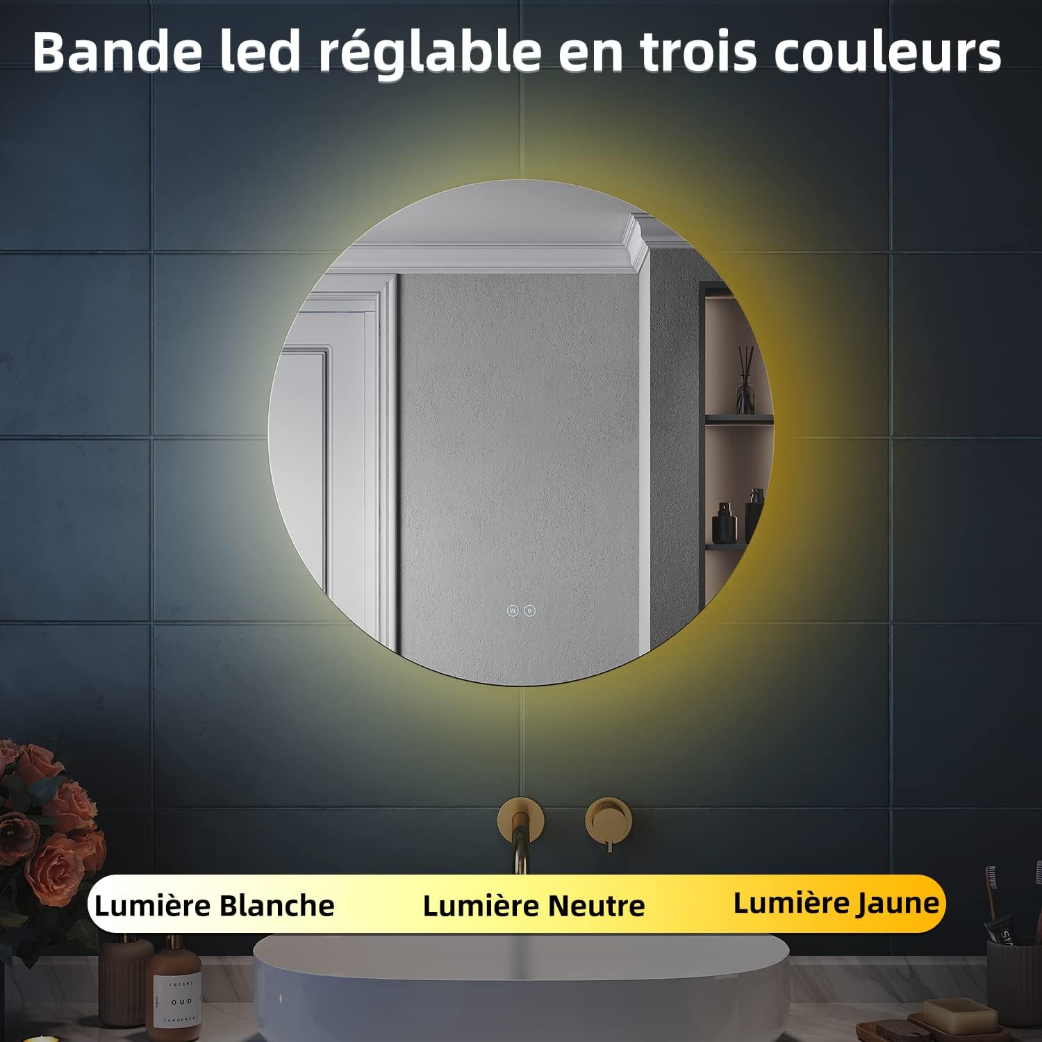 SIRHONA Miroir Rond Salle de Bain LED Miroir Lumineux Salle de Bain avec Eclairage Intégré, 3 températures de Couleur, Anti-buée