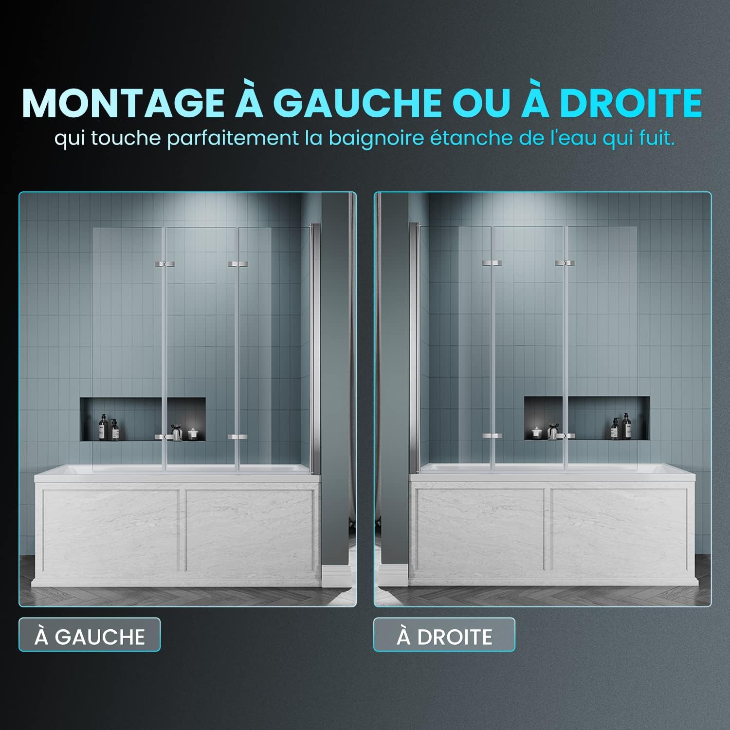 SIRHONA Paroi de Douche Baignoire, 2 volets with 100x130cm / 3volets with 130x130cm