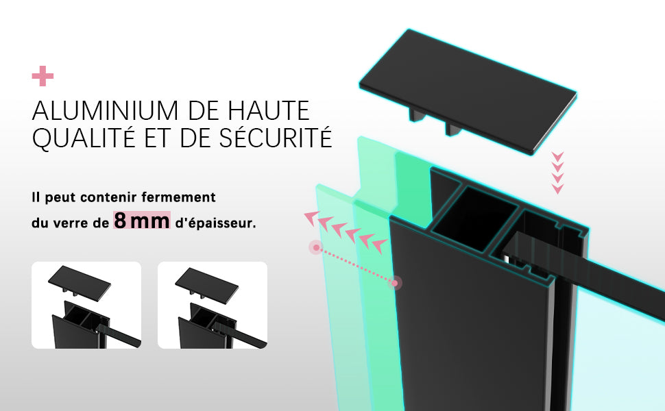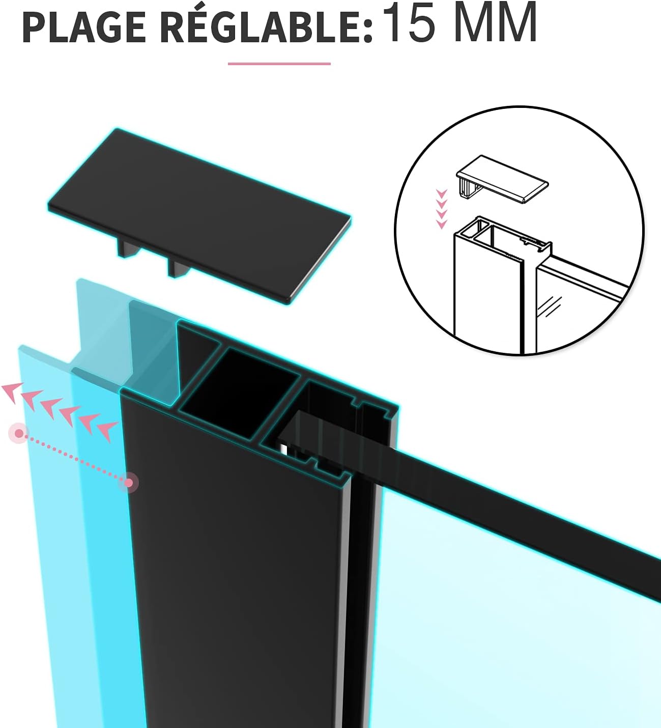 (La mesure se réfère à la taille globale, y compris le profil mural, la vitre et la plage de réglage de 1.5cm en moins)