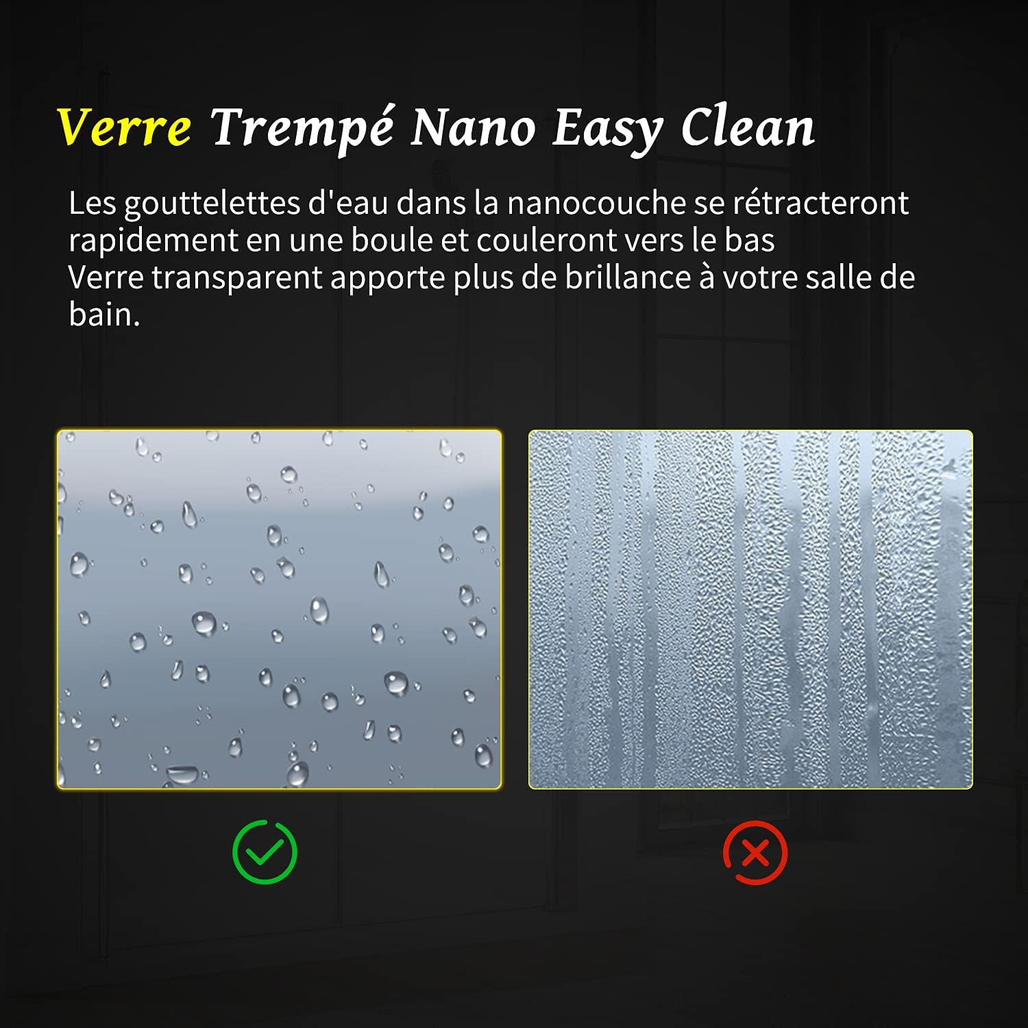 • Verre Anticalcaire  Verre Nano "Self Clean", verre facile à nettoyer, l'eau ne restera pas et ne laissera pas de traces sur le verre.