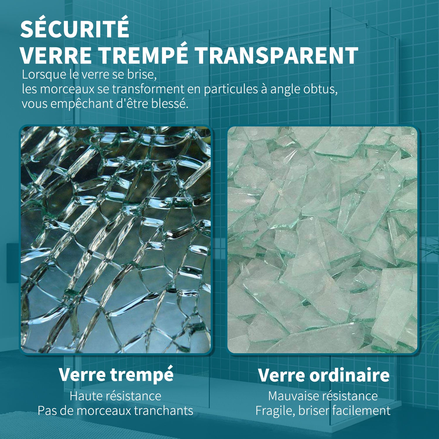 • Verre trempé de sécurité de 8 mm, certifié BS EN 12150 et CE.