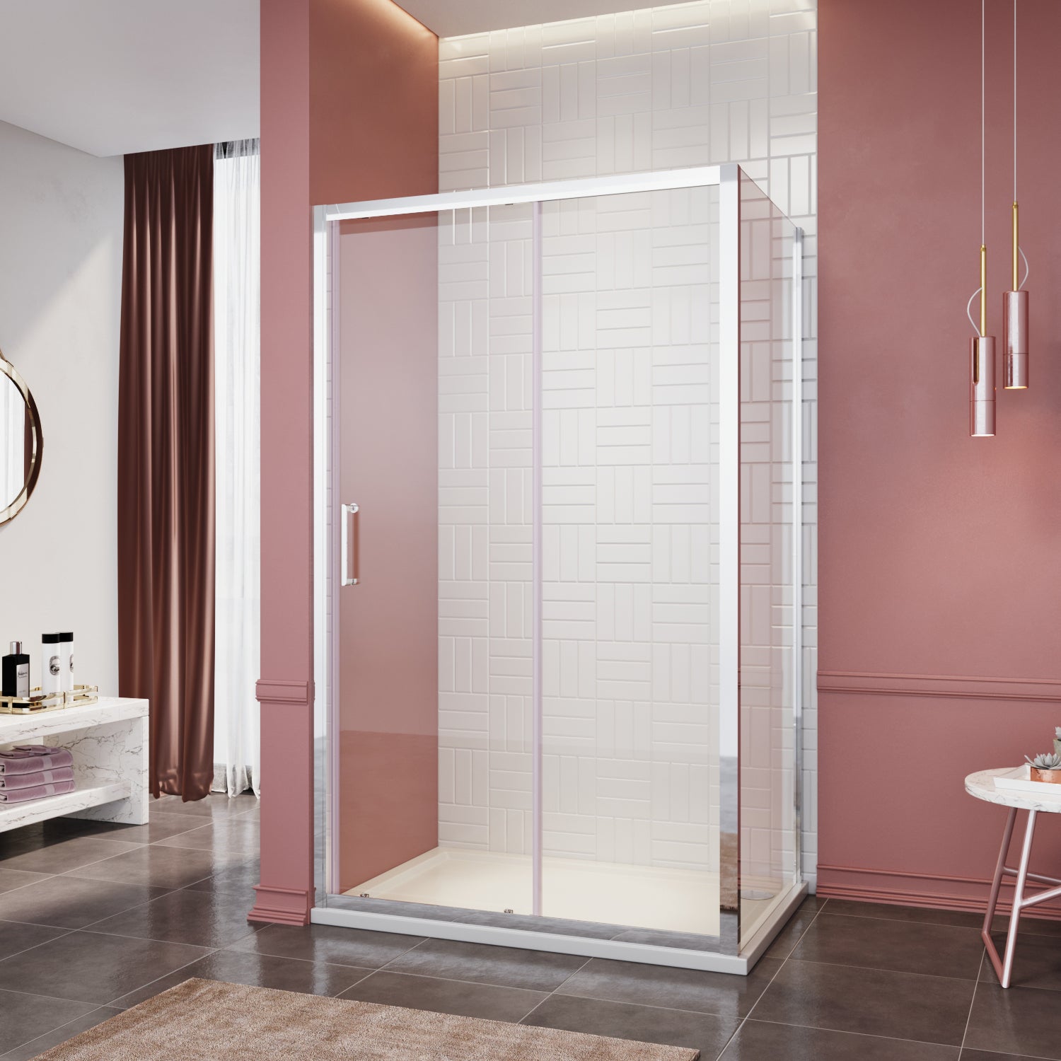 • Paroi de douche coulissante extra large, semble élégant et facile à nettoyer.
