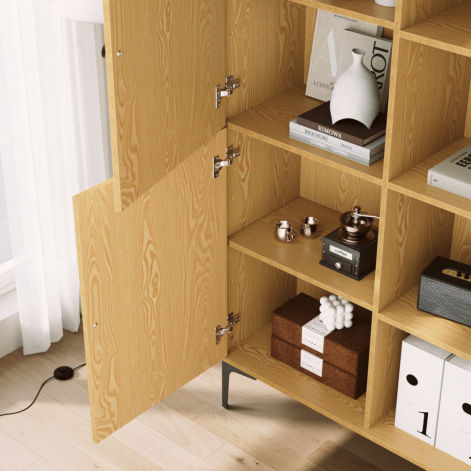 SIRHONA Vitrine de style moderne Semi-ouverte Bibliothèque à 8 compartiments salon Étagère de Rangement Meubles couleur bois 100x35x160 cm