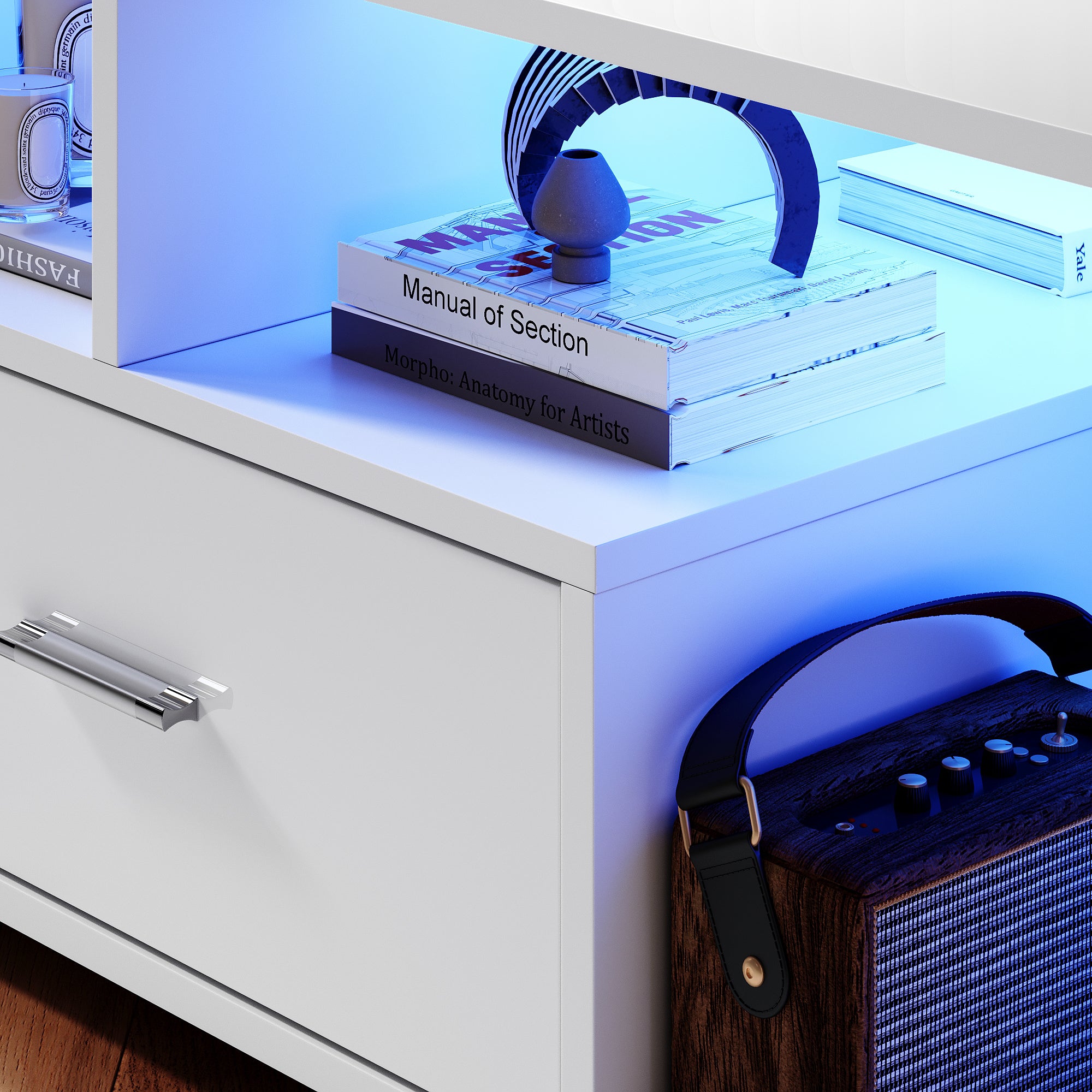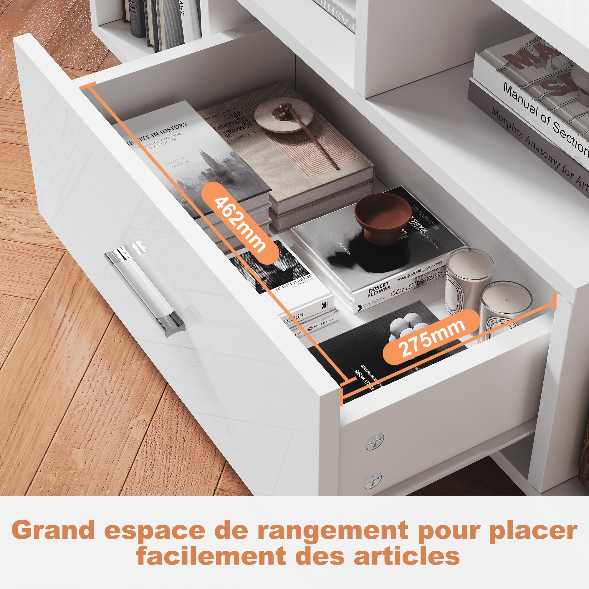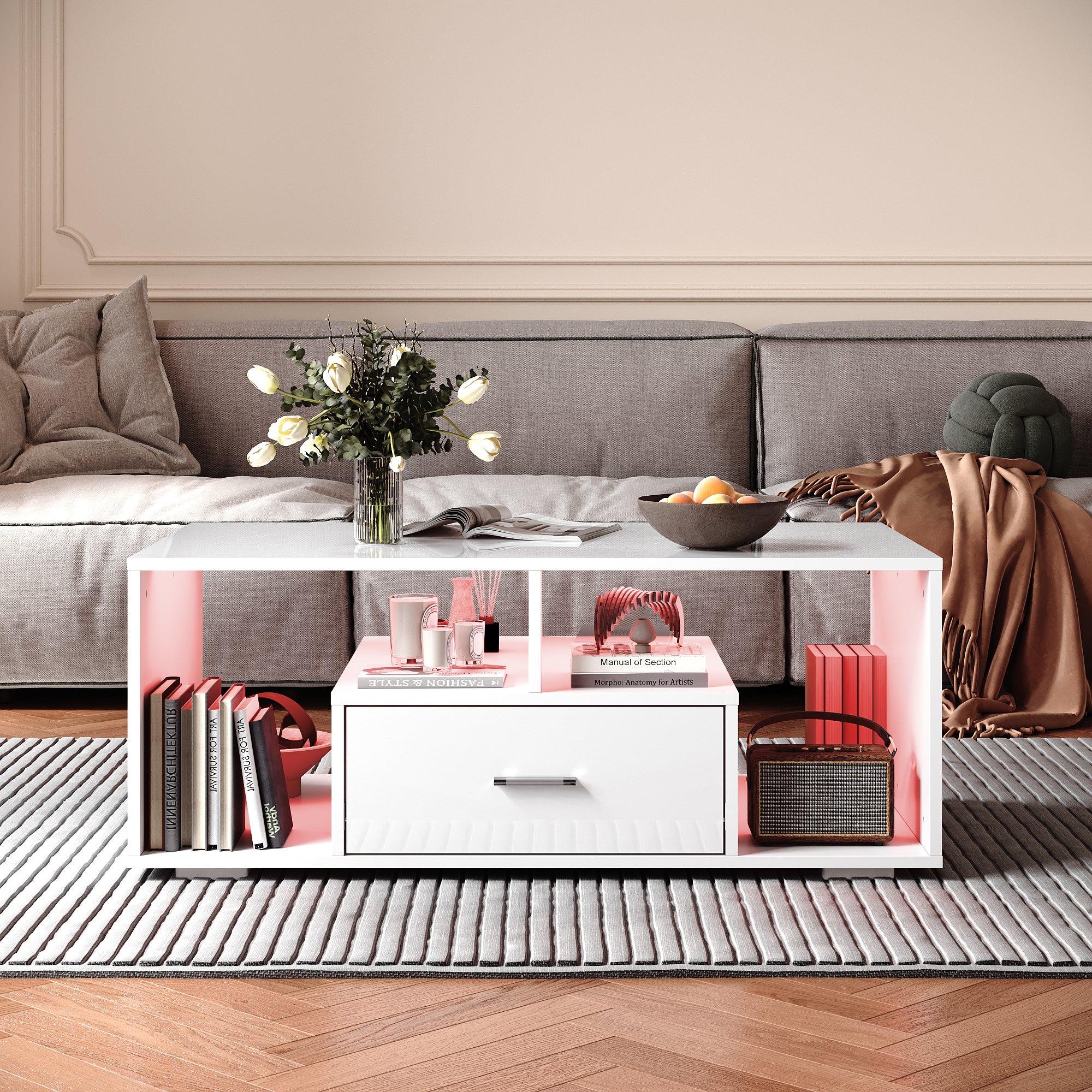 Table basse avec tiroirs de rangement et éclairage LED réglable Disponible en 12 couleurs Blanc 55 x 100 x 40 cm