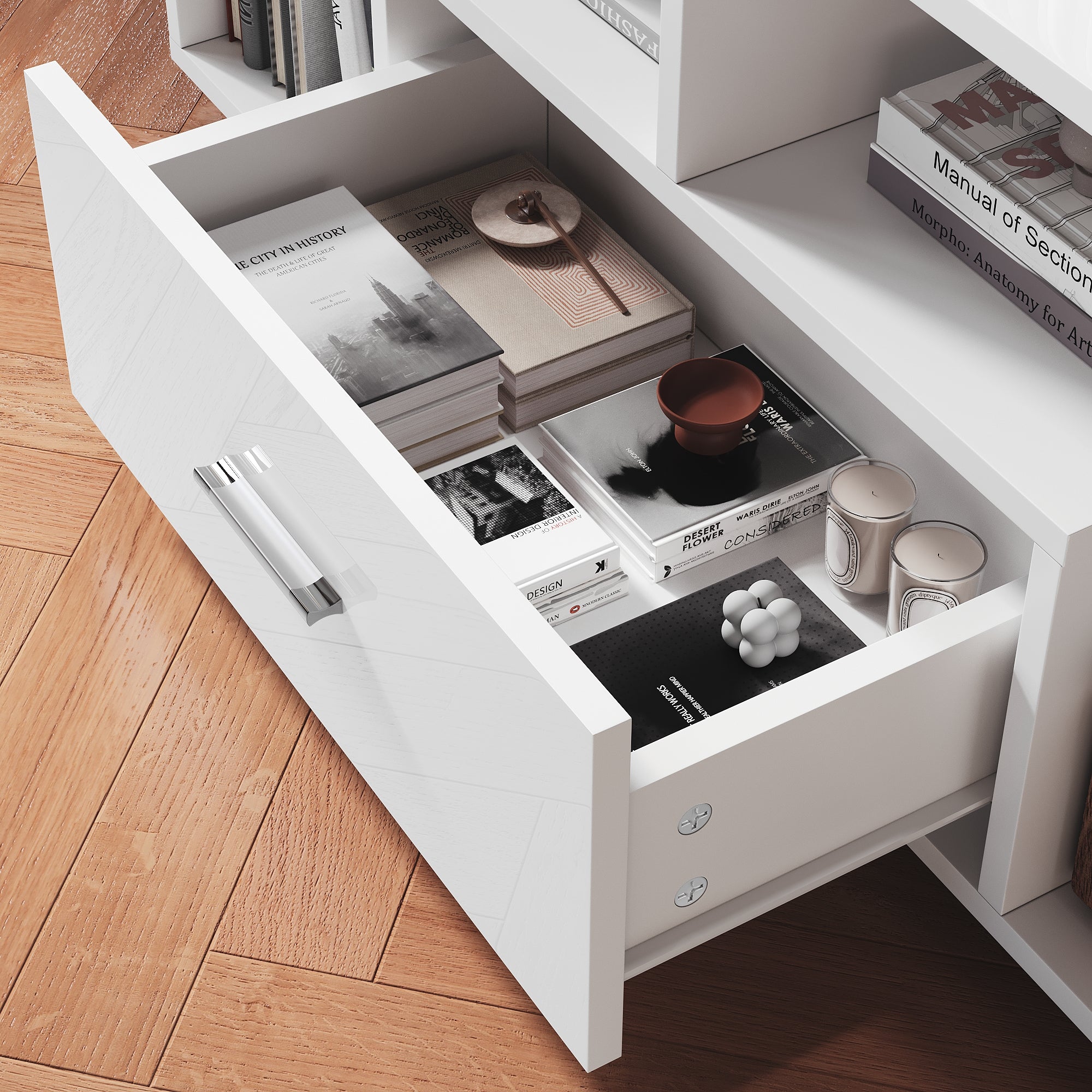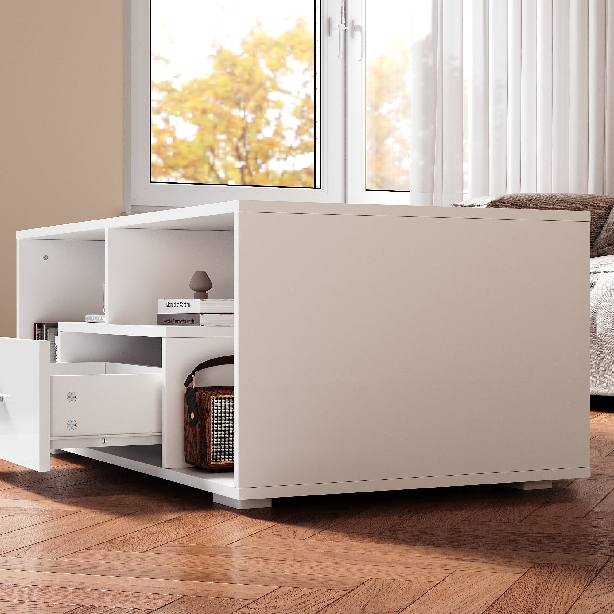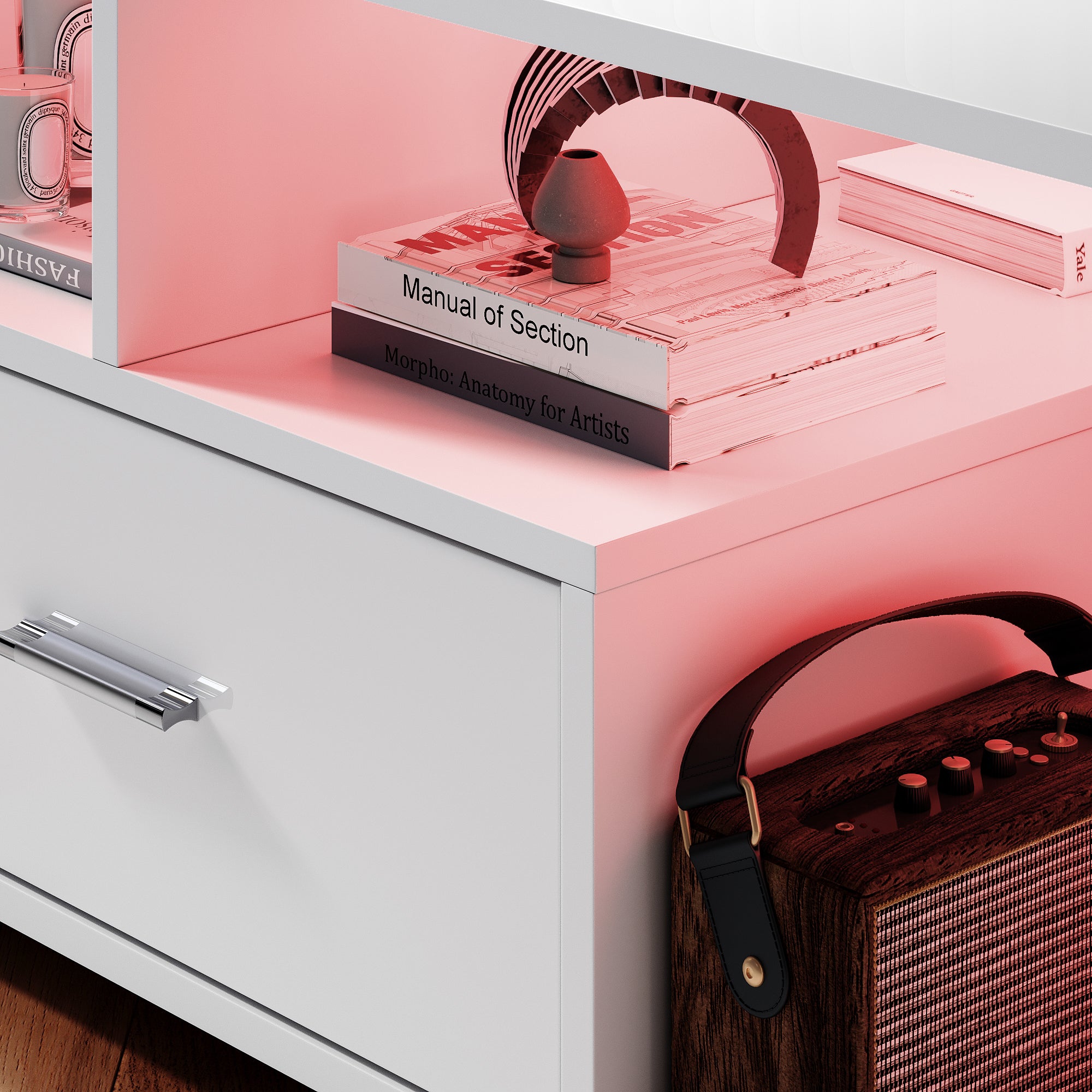 Table basse avec tiroirs de rangement et éclairage LED réglable Disponible en 12 couleurs Blanc 55 x 100 x 40 cm